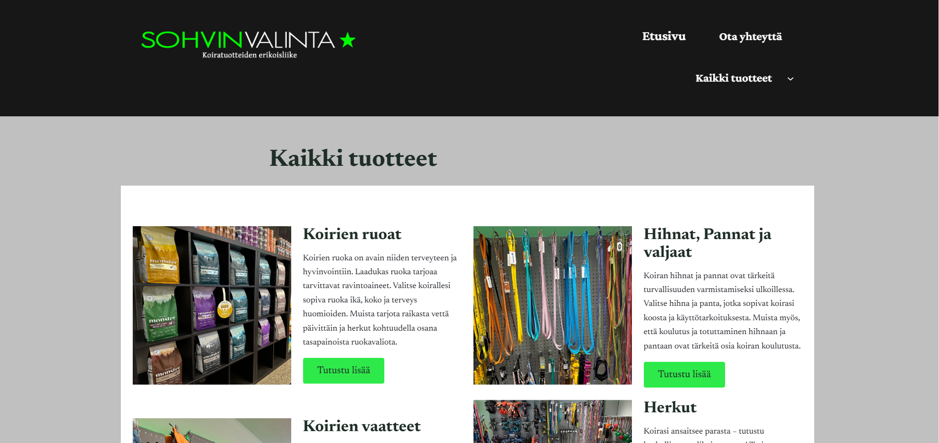 Yksinkertainen usean sivun kotisivukokonaisuus, johon kuului sivujen suunnittelun lisäksi tuotteiden kuvausta ja kuvien käsittelyä.